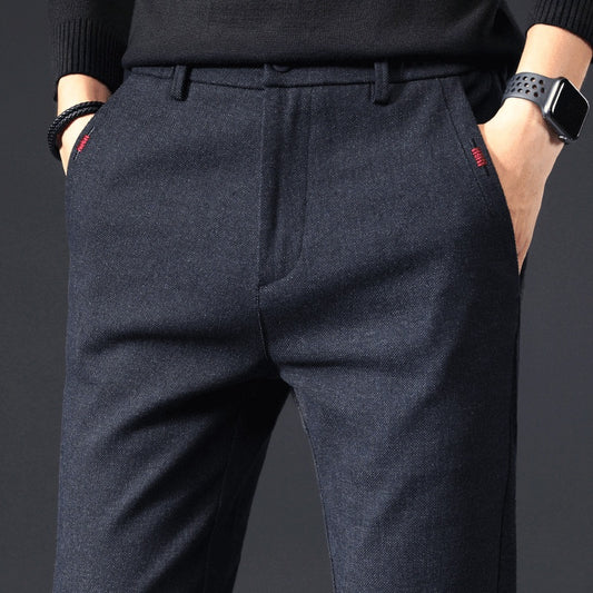 Style Autumn Brushed Casual Straight Business Middle-aged Father Men's All-matching Slim-fitting Long Pants