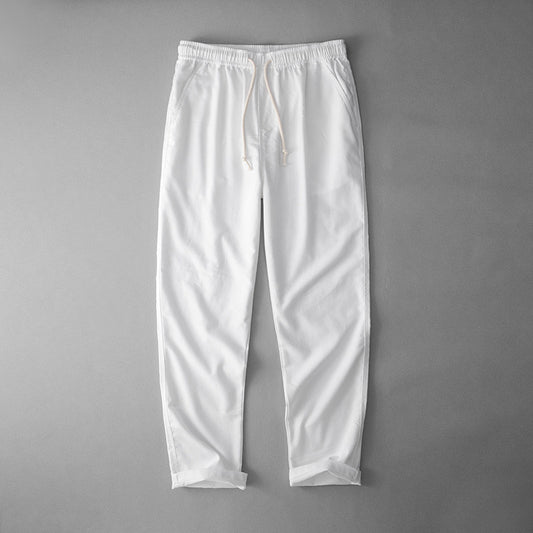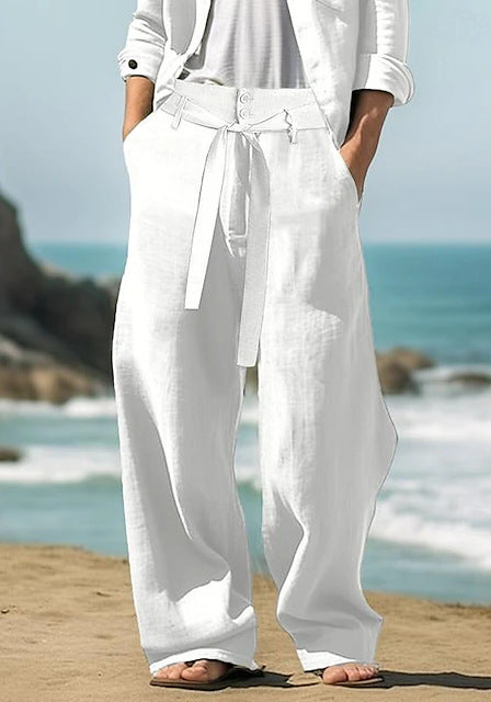 Men's Linen Belt Elastic Waist Straight Pure Color Comfort Breathable Outdoor Pants