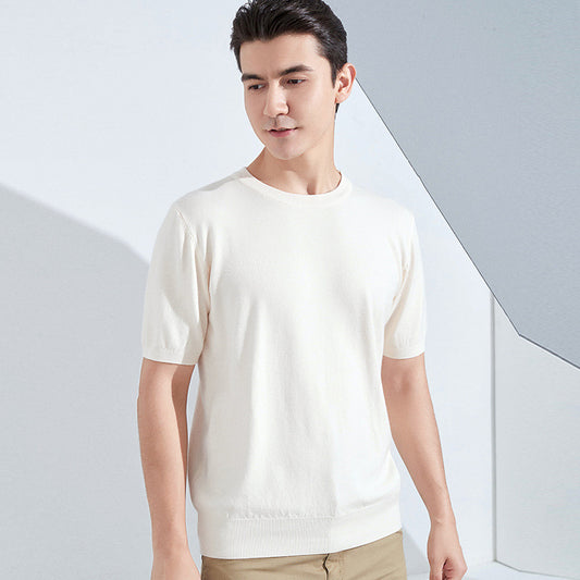 Men's Knitted Short Sleeve Solid Color Casual Loose-fitting T-shirt