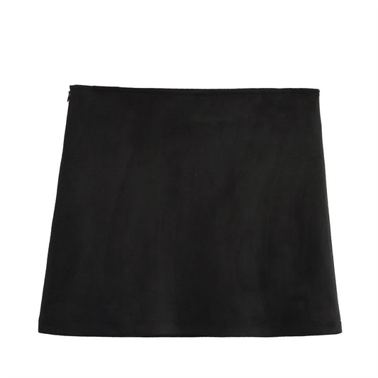 Suede Texture Effect Long Sleeve Short Jacket Jacket Casual Mid-length Dress Set