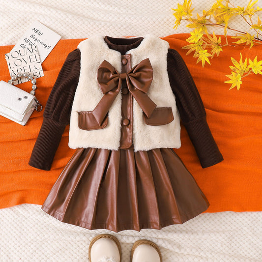 Three-piece Set Of Long-sleeve Base PU Leather Skirt