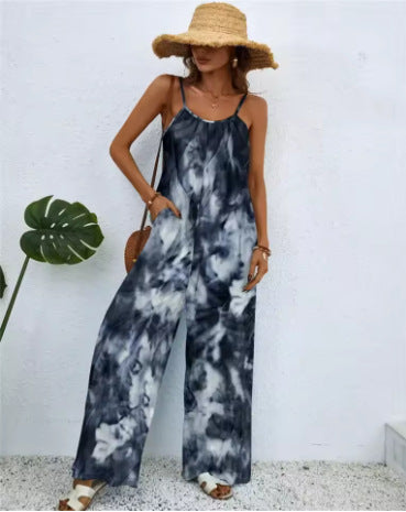 Women's Wide-leg Slim Fit Tied Printed Jumpsuit