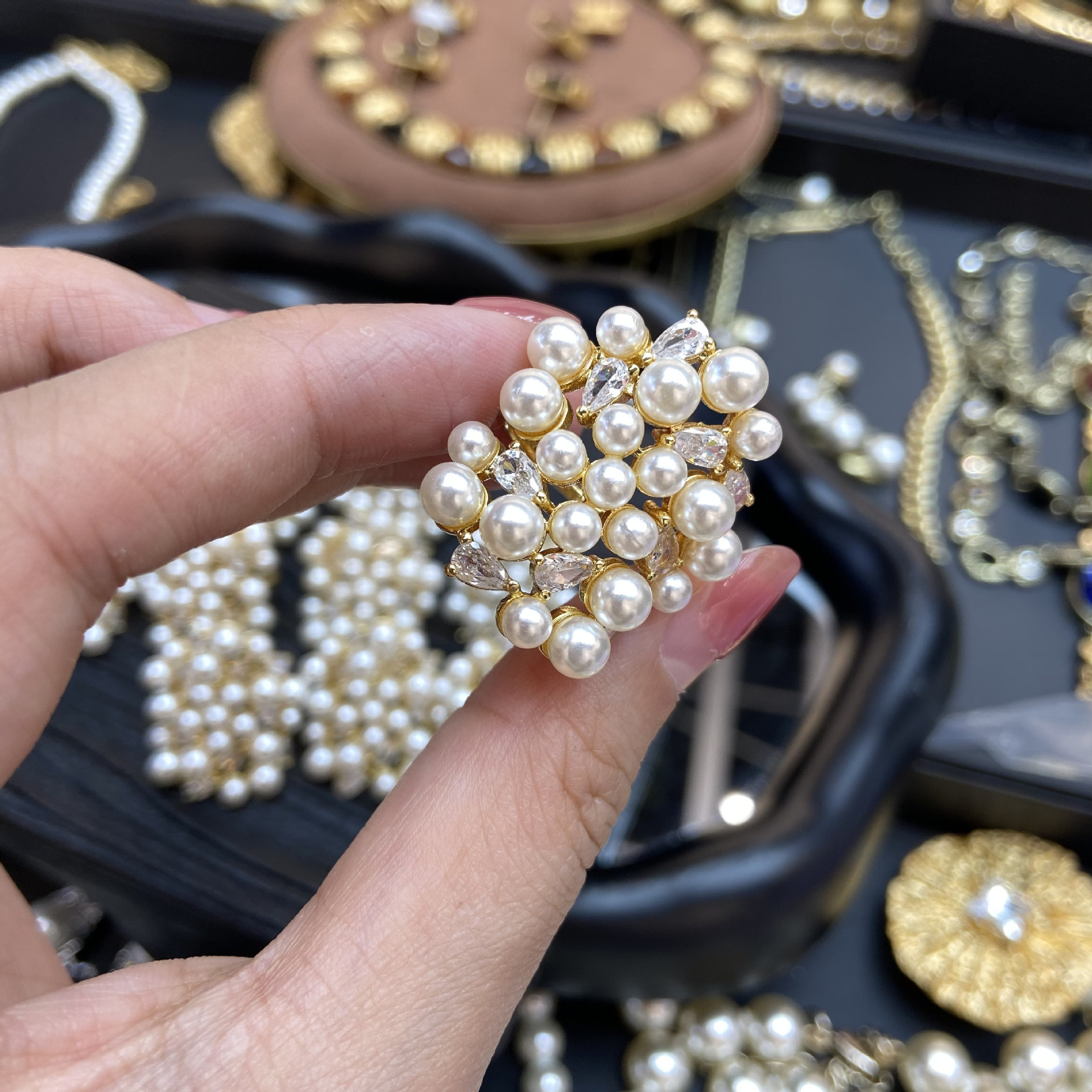 Color: dense row inlaid zircon pearl ring