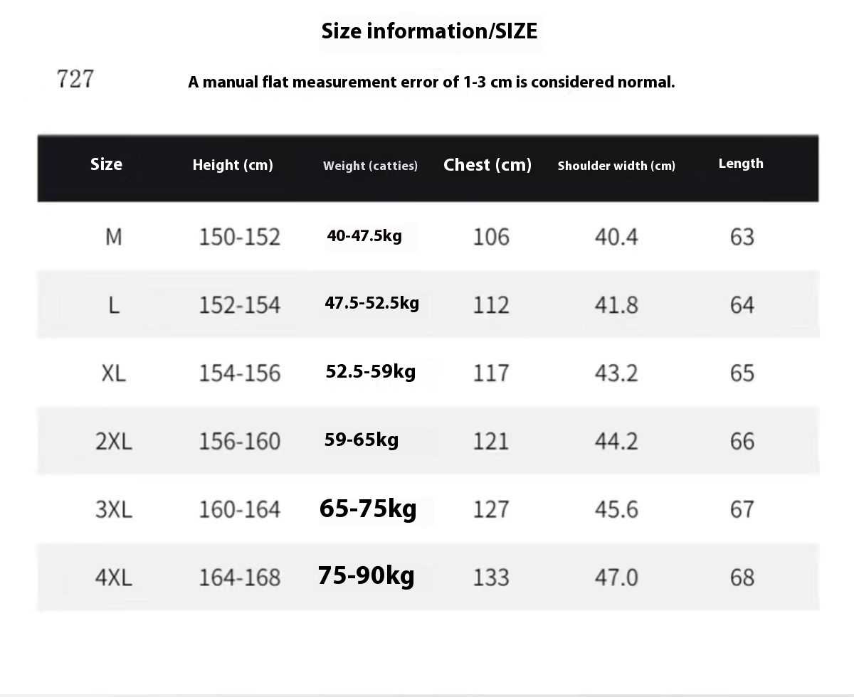 Size: M [recommended 42.50kg-52.50kg],L [recommended 52.50kg-67.50kg],XL [recommended],2XL [recommended 67.50kg-77.50kg],3XL [recommended 77.50kg-87.50kg],4XL [recommended 87.50kg-100.00kg]]