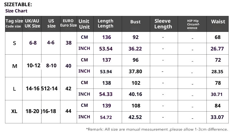 1. Asian sizes are 1 to 2 sizes smaller than European and American people. Choose the larger size if your size between two sizes. Please allow 2-3cm differences due to manual measurement. 2. Please check the size chart carefully before you buy the item, if you don't know how to choose size, please contact our customer service. 3.As you know, the different computers display colors differently, the color of the actual item may vary slightly from the following images.