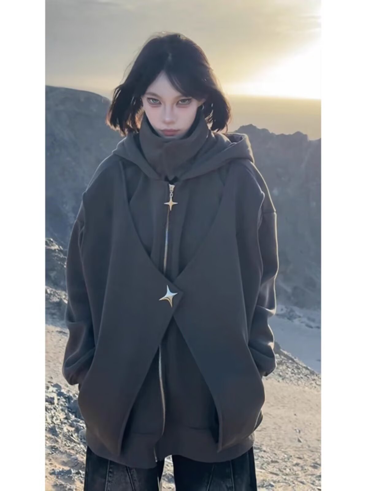 Fake Two-piece Hooded Turtleneck Sweater For Men And Women