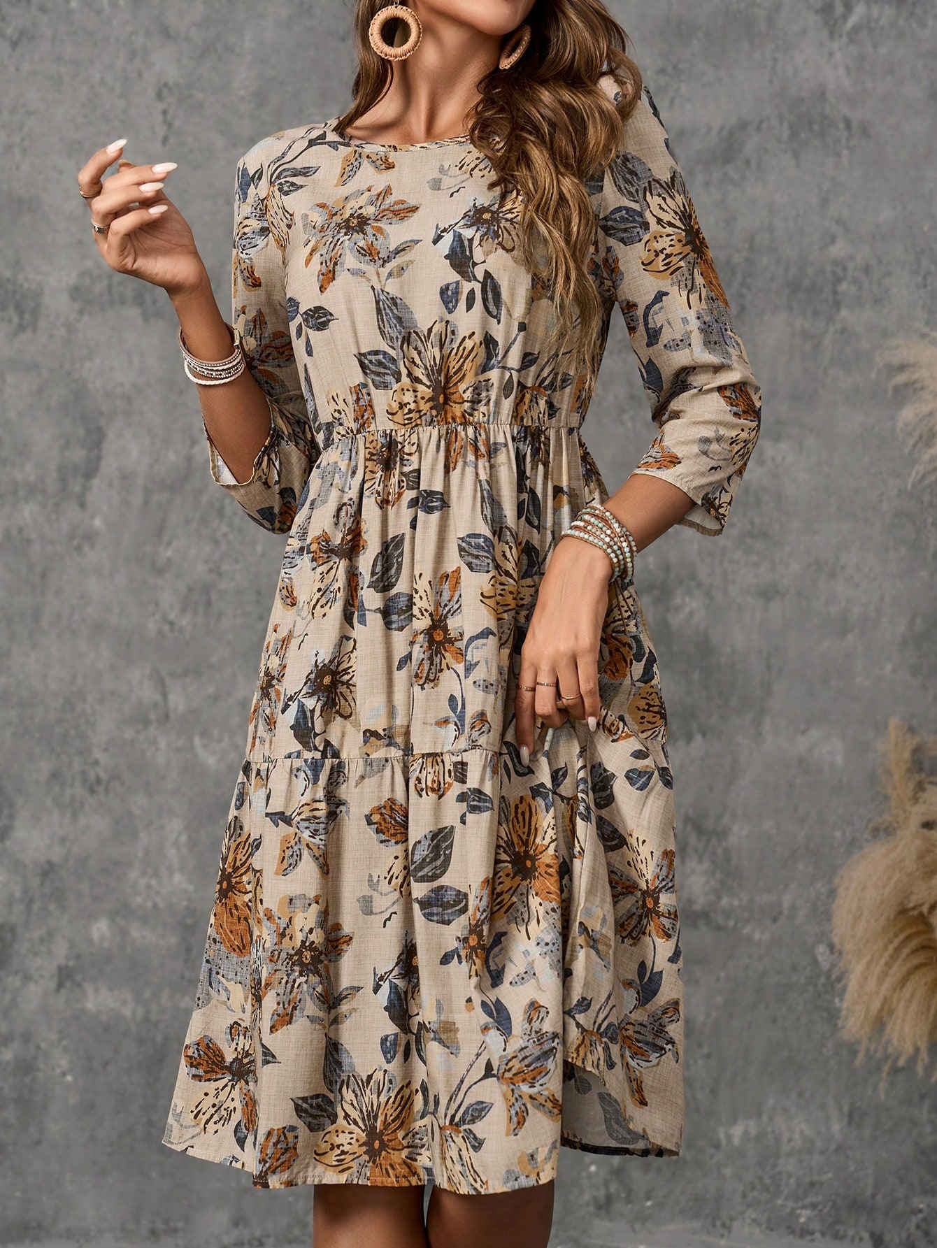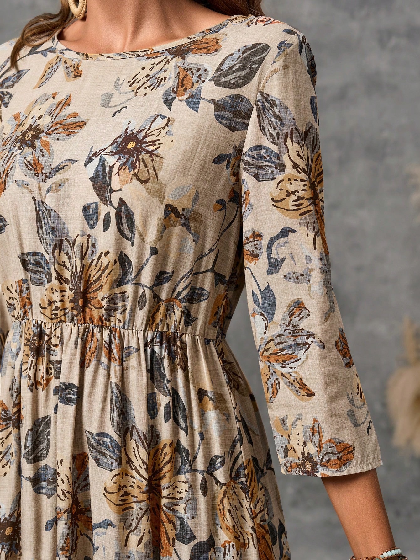 Fashion Round Neck Women's Cotton Linen Printed Dress