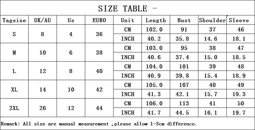1. Asian sizes are 1 to 2 sizes smaller than European and American people. Choose the larger size if your size between two sizes. Please allow 2-3cm differences due to manual measurement. 2. Please check the size chart carefully before you buy the item, if you don't know how to choose size, please contact our customer service. 3.As you know, the different computers display colors differently, the color of the actual item may vary slightly from the following images.