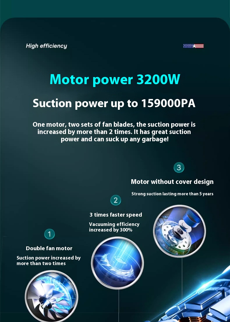 Color: 35L top with all-around model, 3000W super large suction, 8.8 m thread, 5 m tube