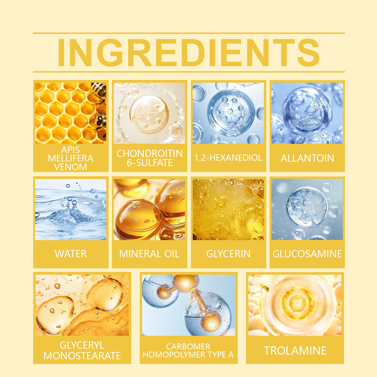 Active ingredients: bee venom, 6-sulfuric acid chondroitin