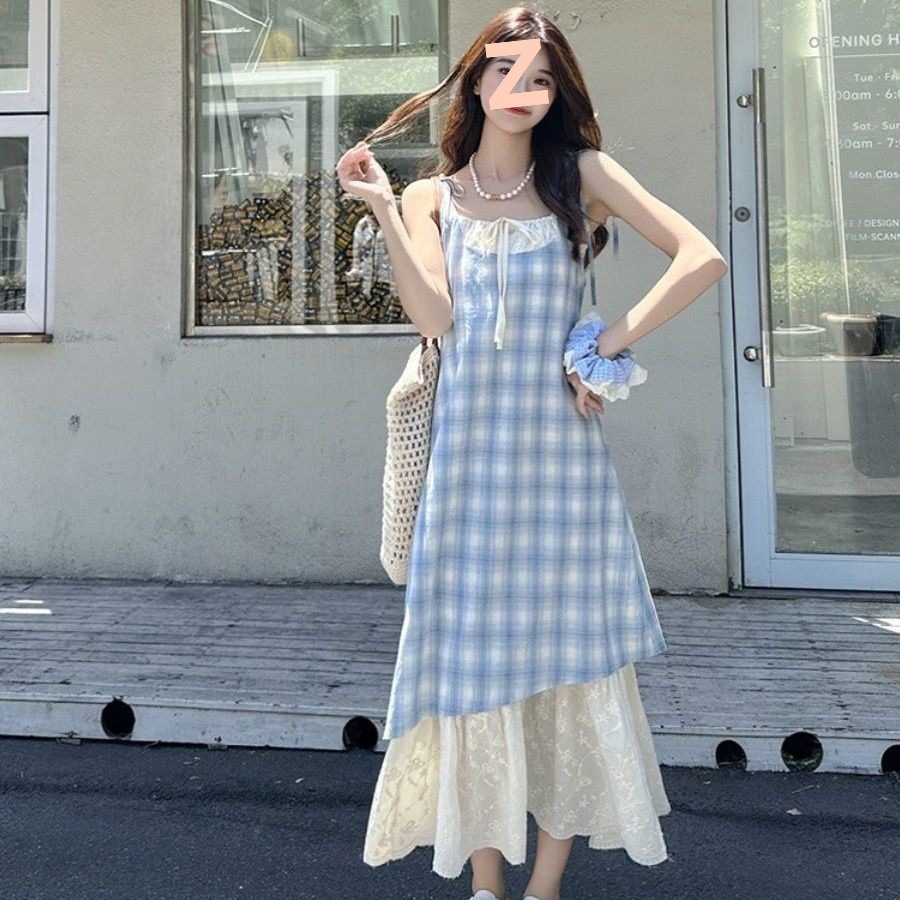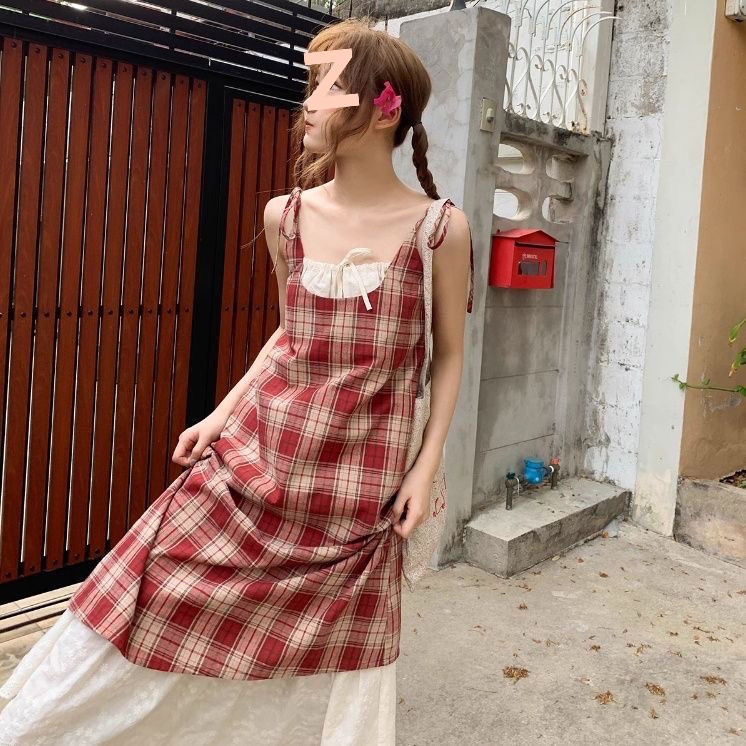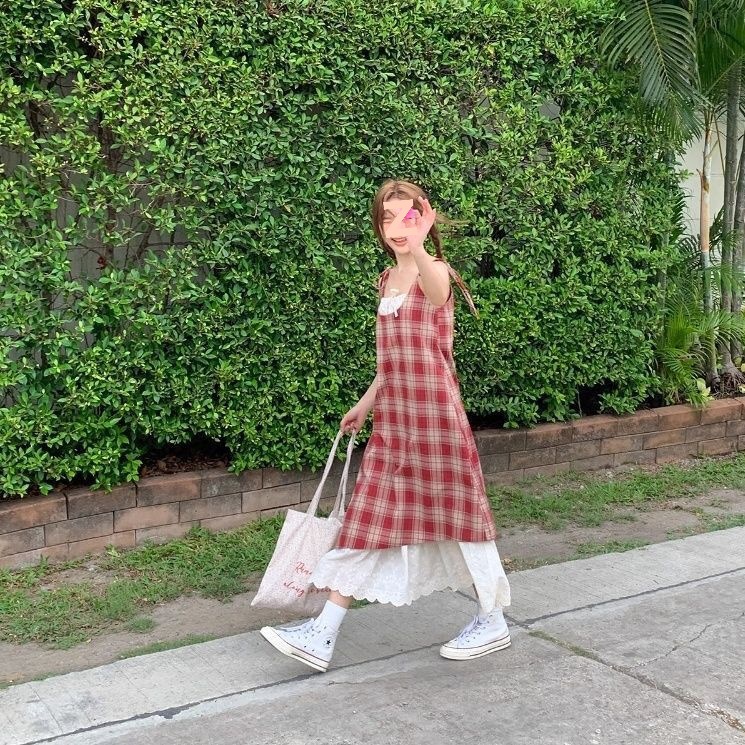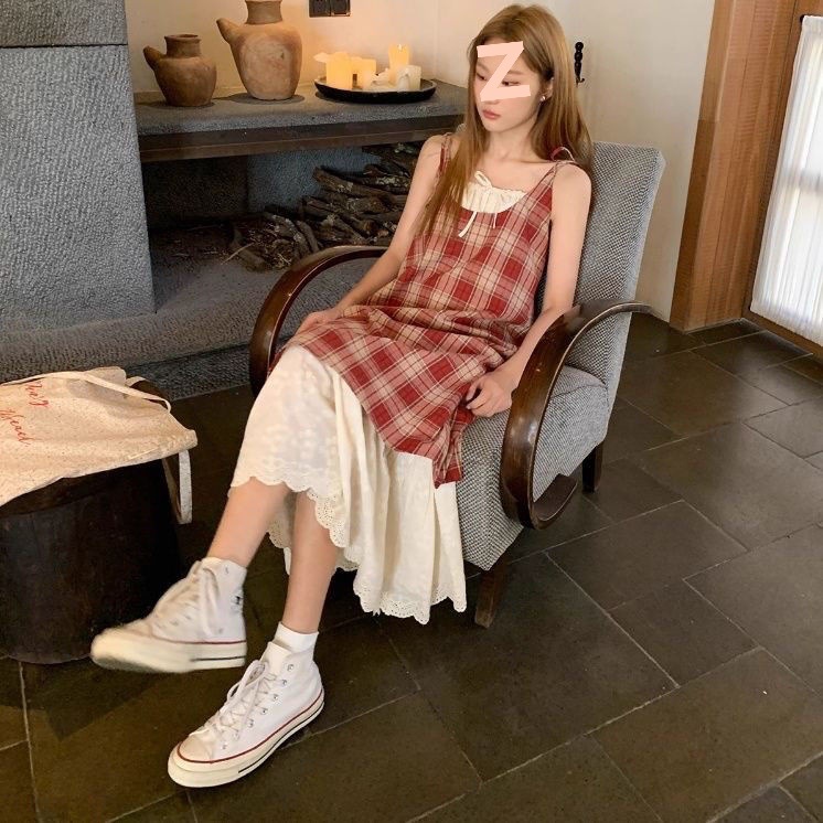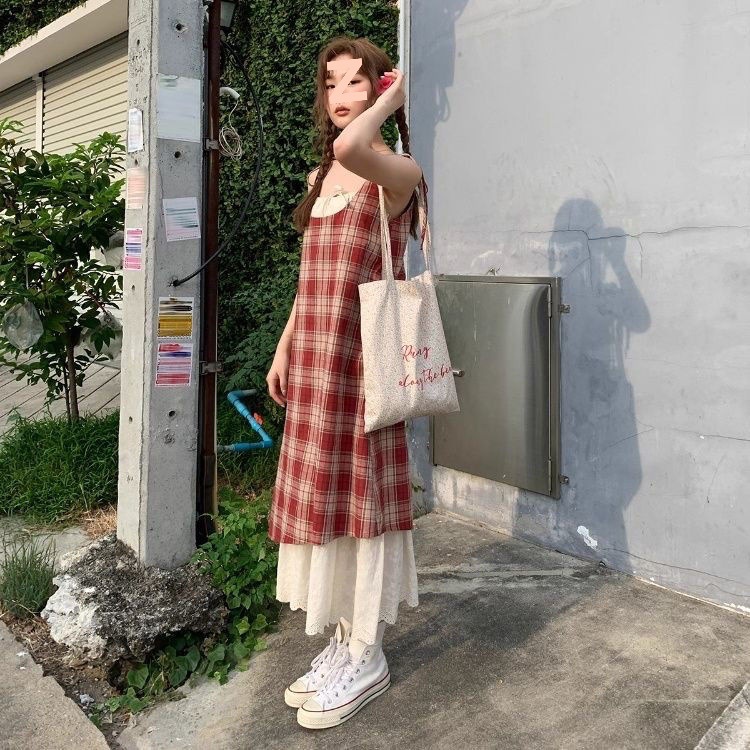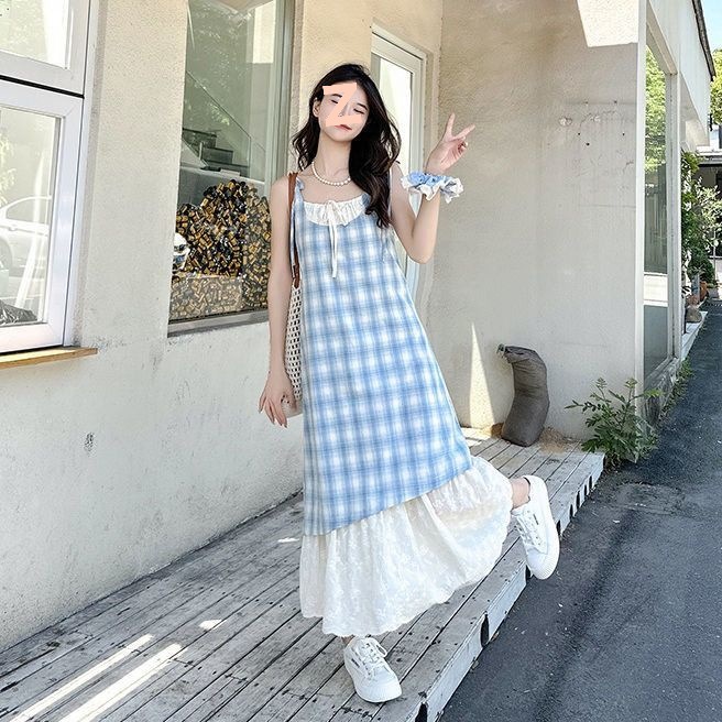 Loose Patchwork Plaid Spaghetti Strap Dress For Women