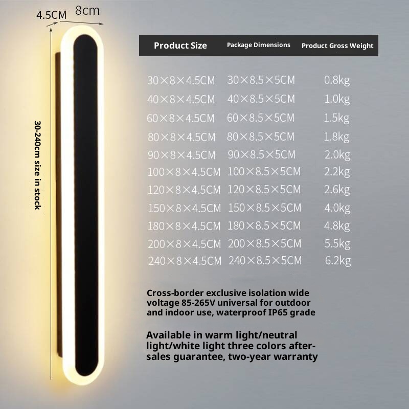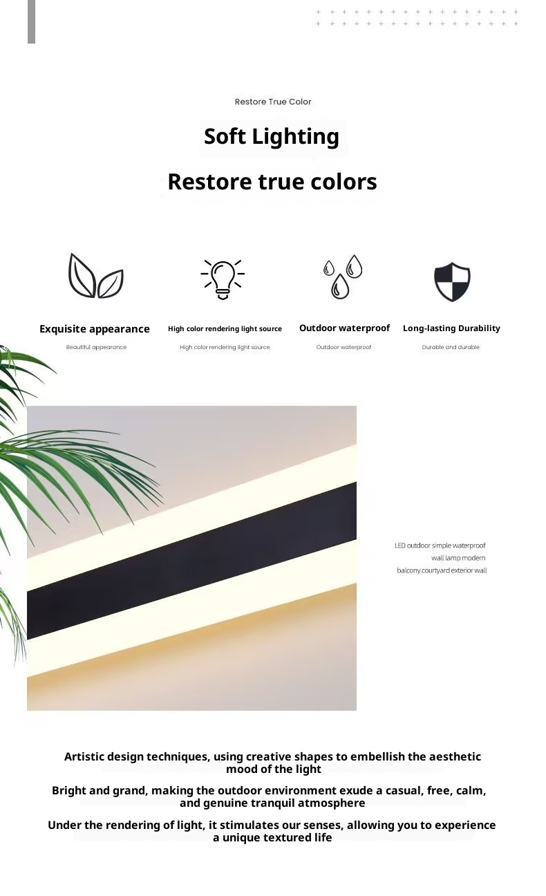 Outdoor Minimalist Linear Strip Waterproof Wall One-shaped Lamp