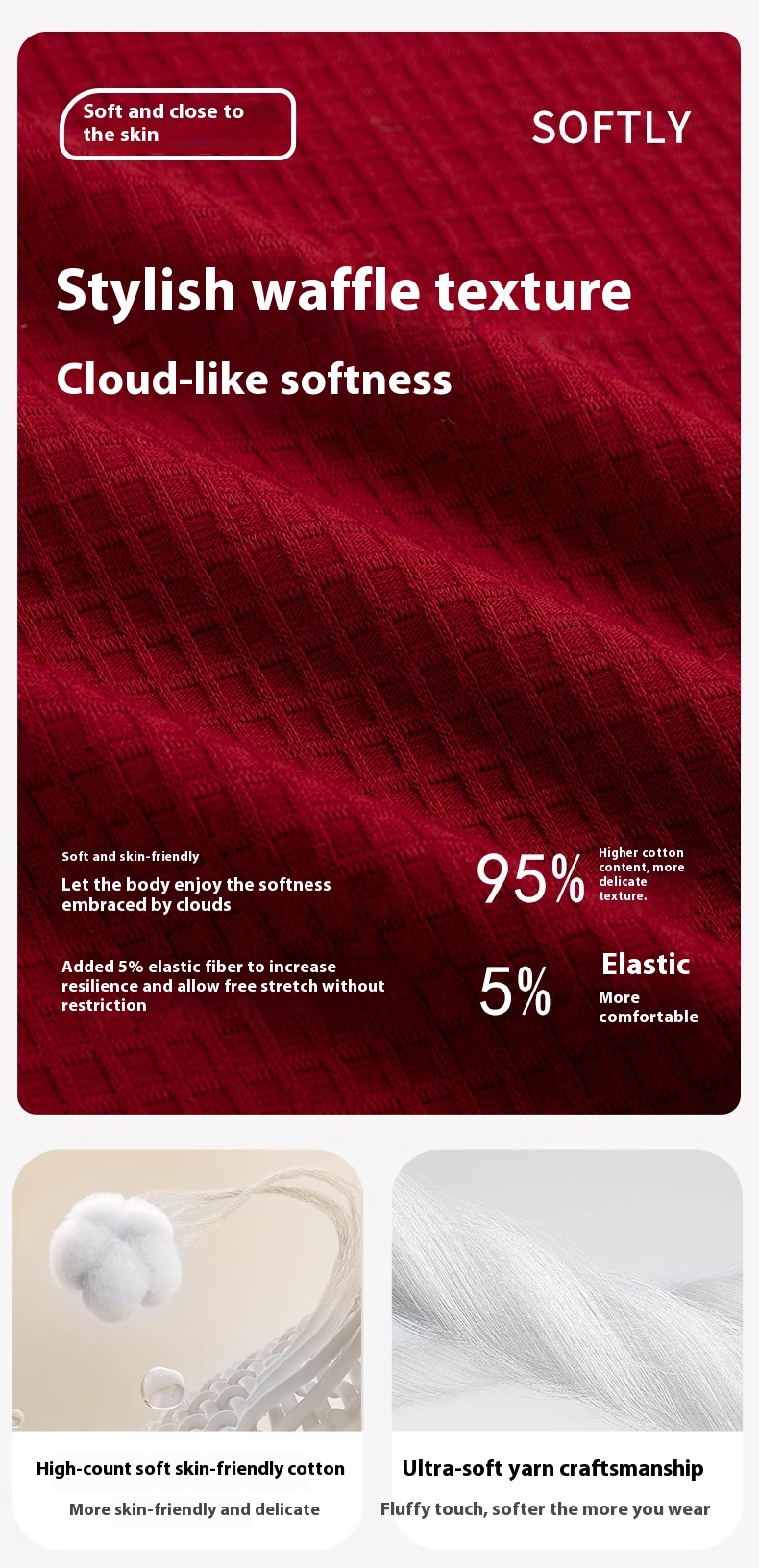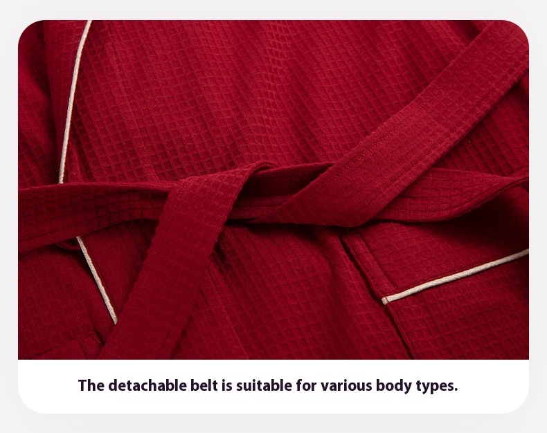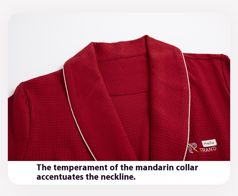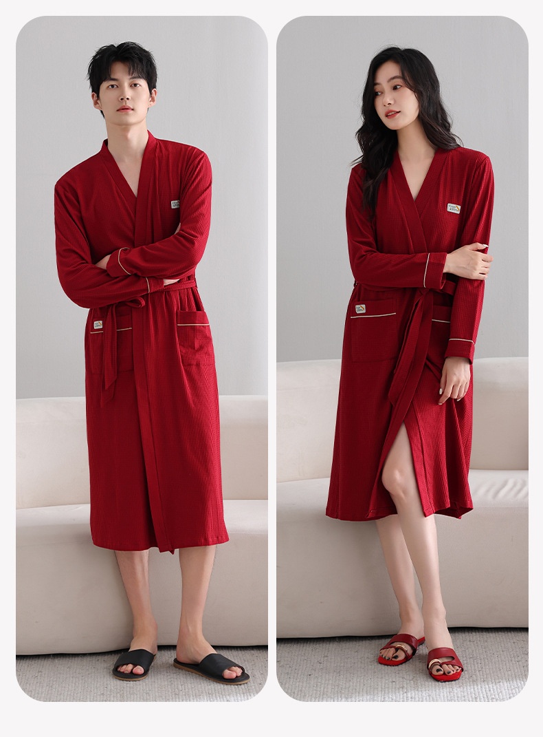 Red Couple Nightgown Autumn Cotton Waffle Long Sleeve