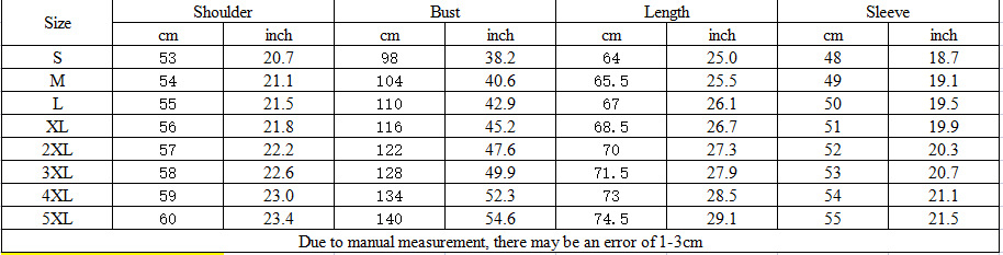 Sizes: S, M, L, XL, XXL, 3XL, 4XL, 5XL