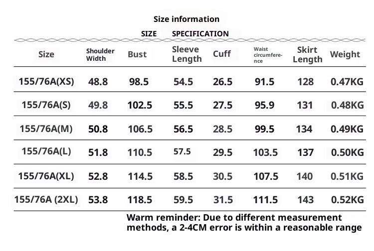 1. Asian sizes are 1 to 2 sizes smaller than European and American people. Choose the larger size if your size between two sizes. Please allow 2-3cm differences due to manual measurement. 2. Please check the size chart carefully before you buy the item, if you don't know how to choose size, please contact our customer service. 3.As you know, the different computers display colors differently, the color of the actual item may vary slightly from the following images.