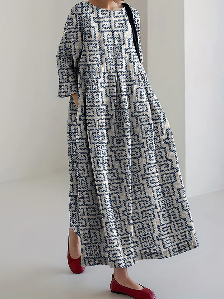 Summer New Floral Loose Round Neck Fashion Advanced Middle-sleeve Floral-print Dress