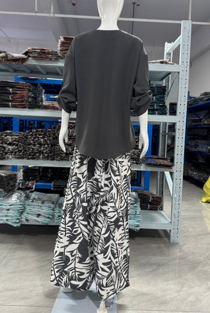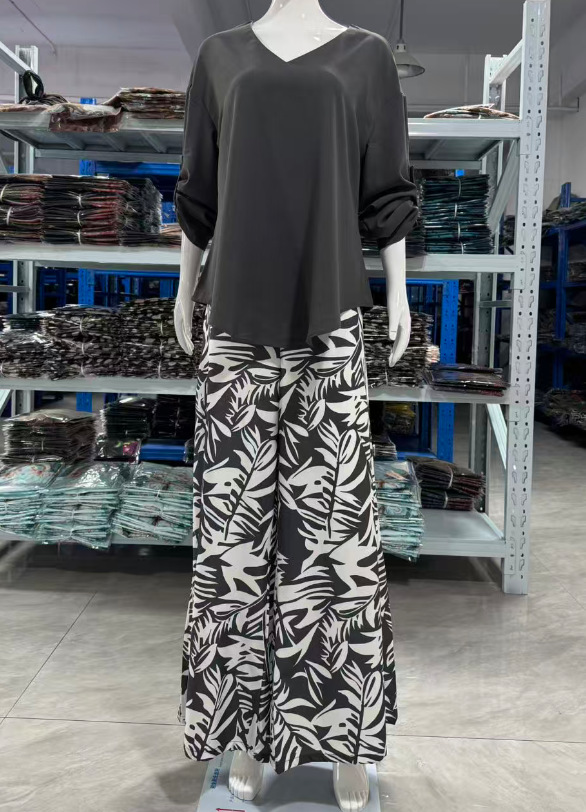 Women's Casual V-Neck Long-Sleeve Pants Set With Digital Print