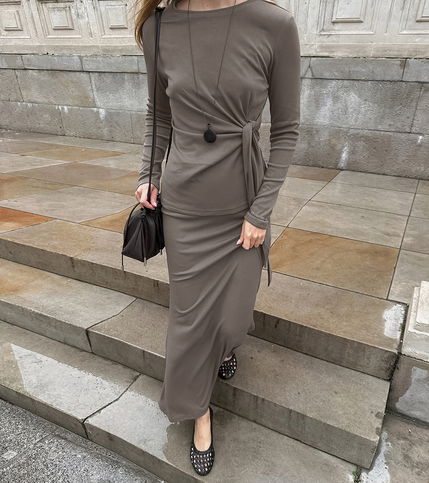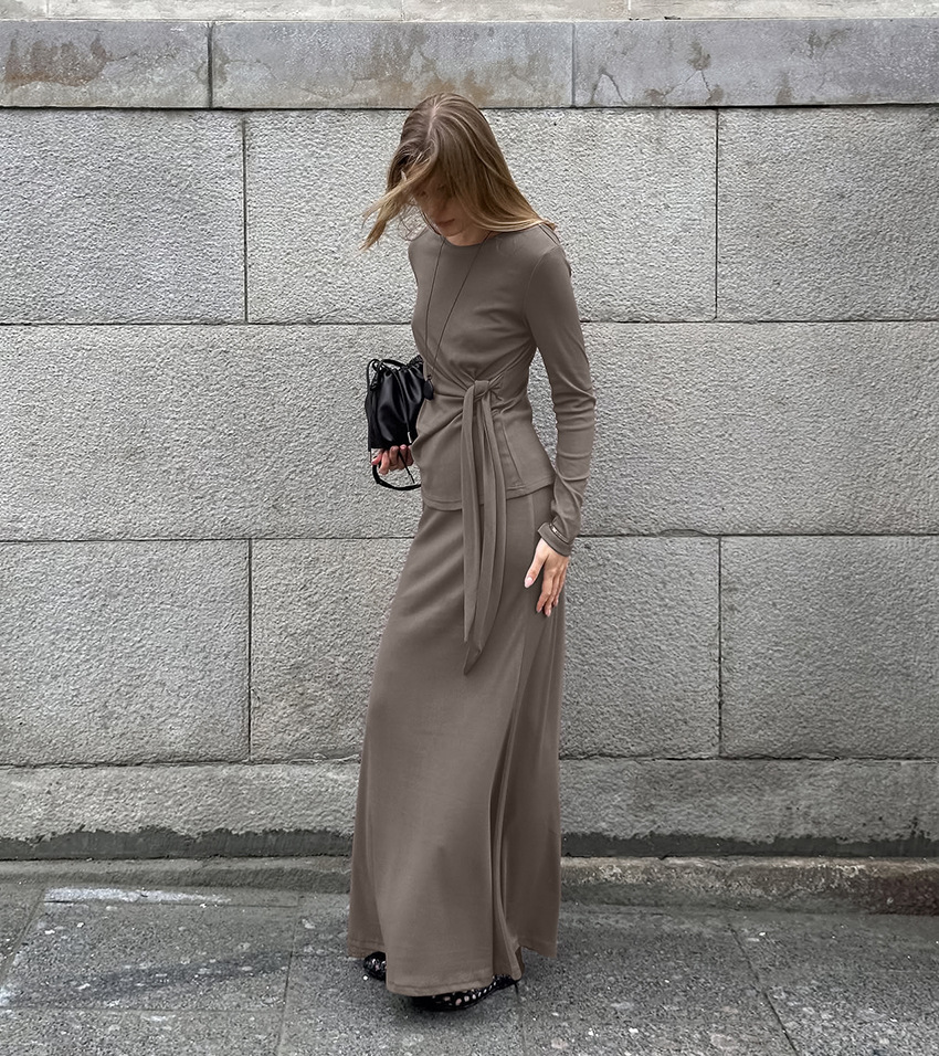 Women's Elegant Retro Crew Neck Dress Two-piece Set