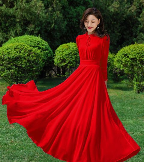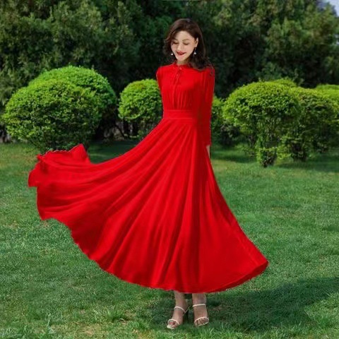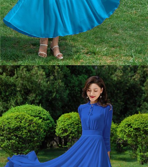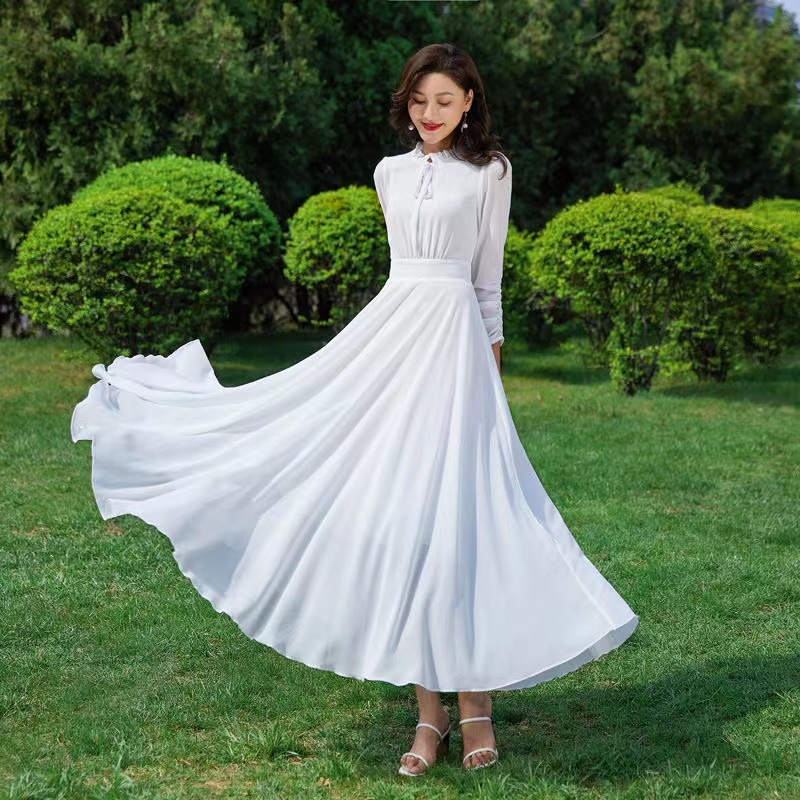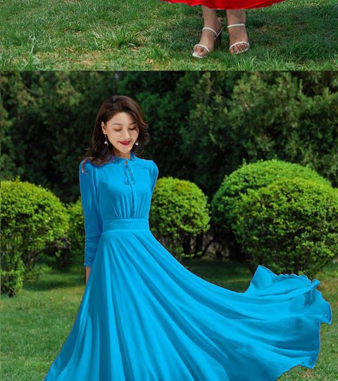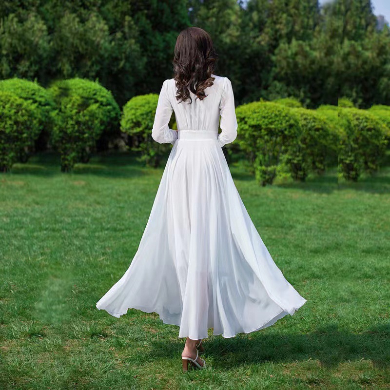 Womens Fashion Chiffon Beach Long-Sleeve Dress