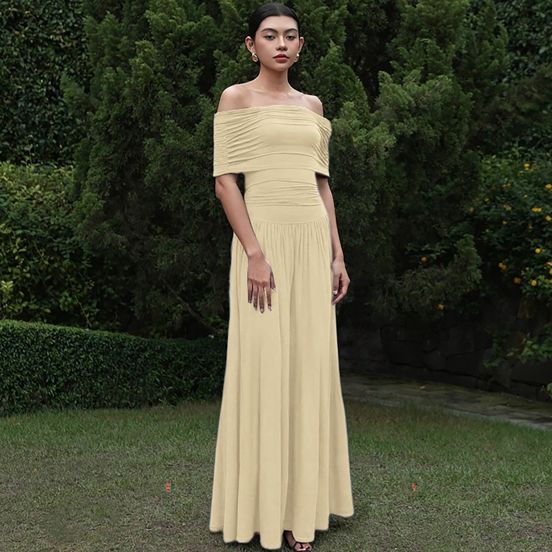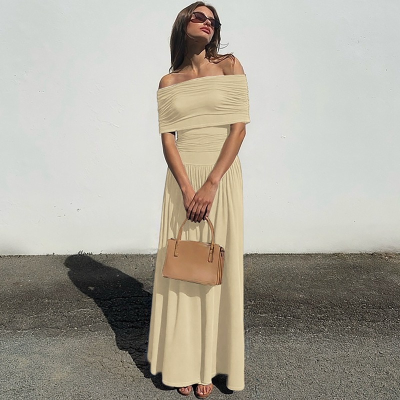 Women's Fashionable Elegant Slim-fit Off-neck Tube Top Solid Color Waist Tight Dress